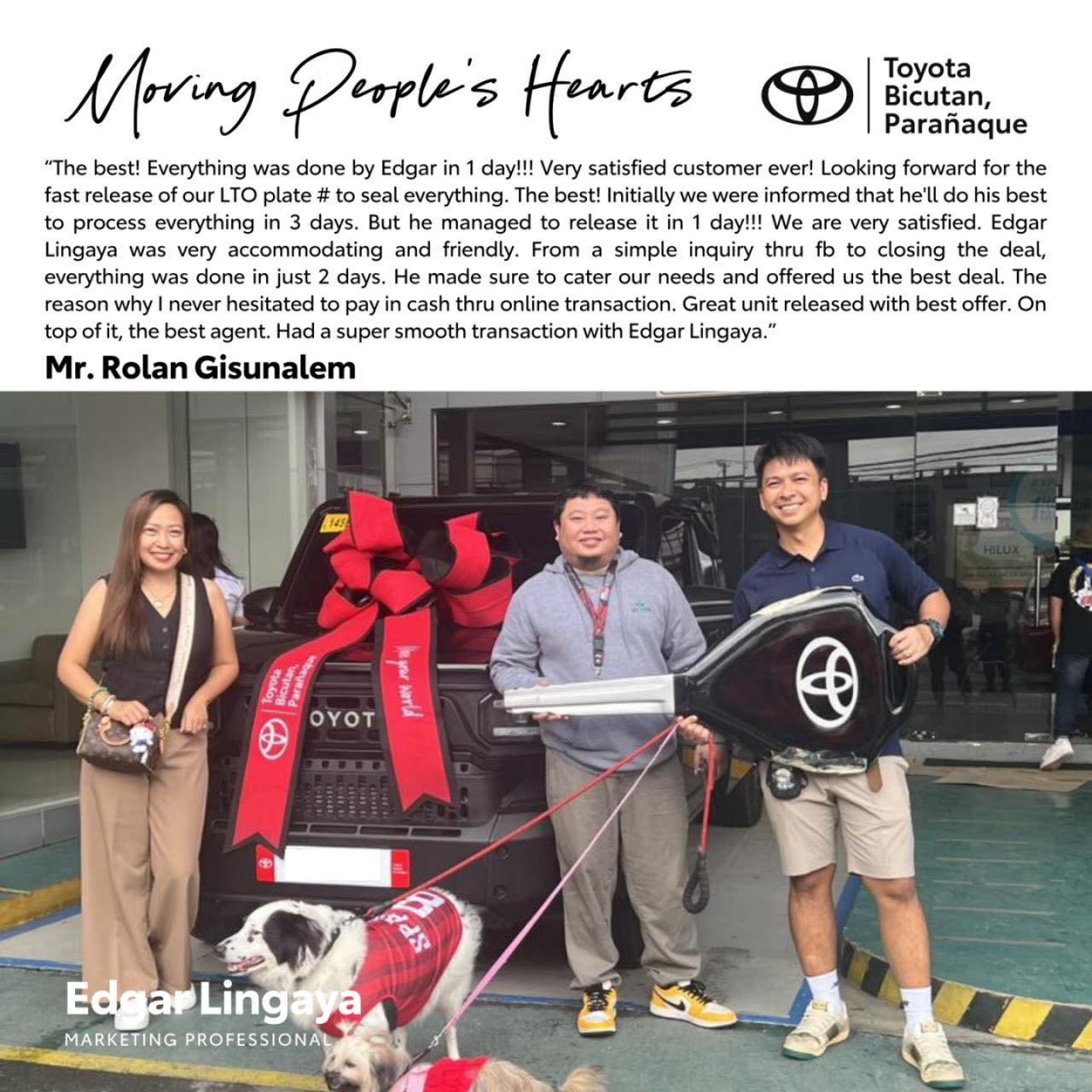 Driving more than cars, Toyota Bicutan Parañaque moves people’s hearts through trust, passion, and exceptional sales experiences every day.